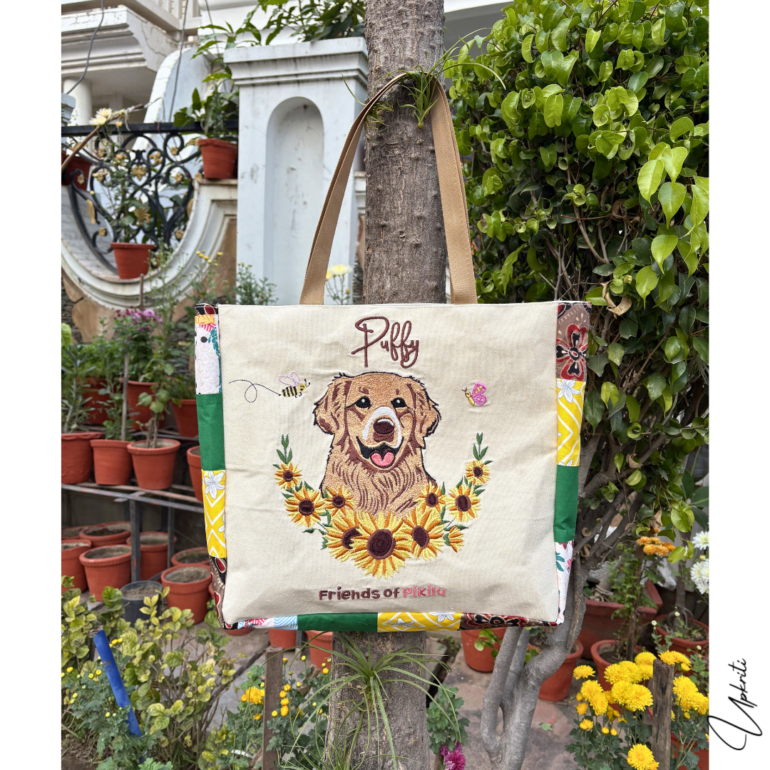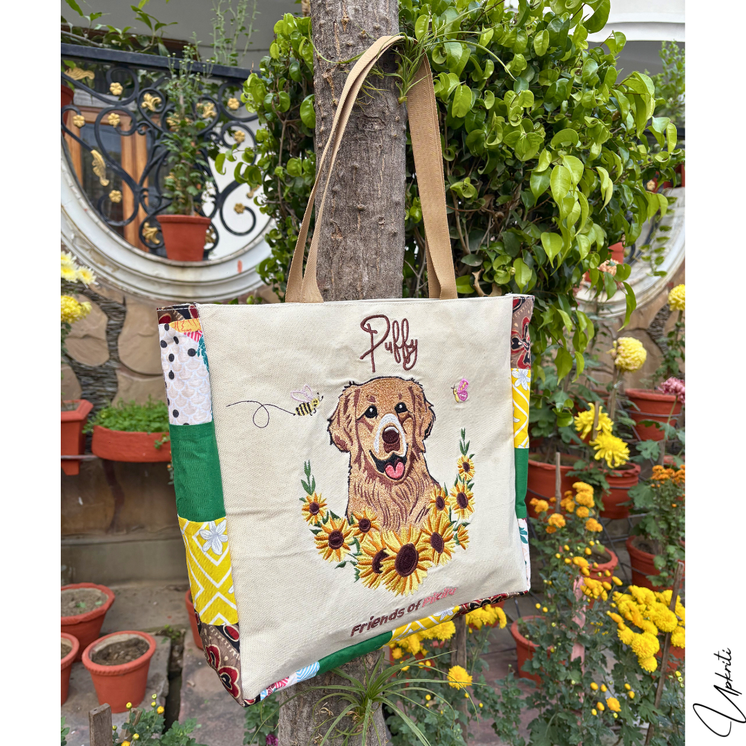 Carry a piece of your heart wherever you go with our Golden Lab Sunshine Canvas Tote Bag. This charming tote is designed to celebrate the special bond between you and your furry friend, featuring beautifully detailed embroidery of your pet dog along with their name.