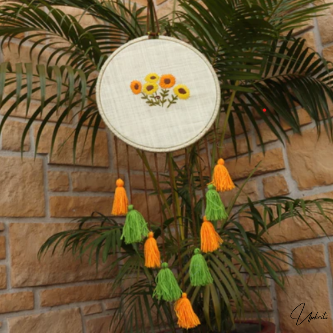 Verschönern Sie Ihren Raum mit diesem bestickten Traumfänger. Dank seiner hübschen Quasten und der niedlichen Blumenstickerei fügt es sich wunderbar in jede Umgebung ein und unterstreicht den Charme des Traumfängers.