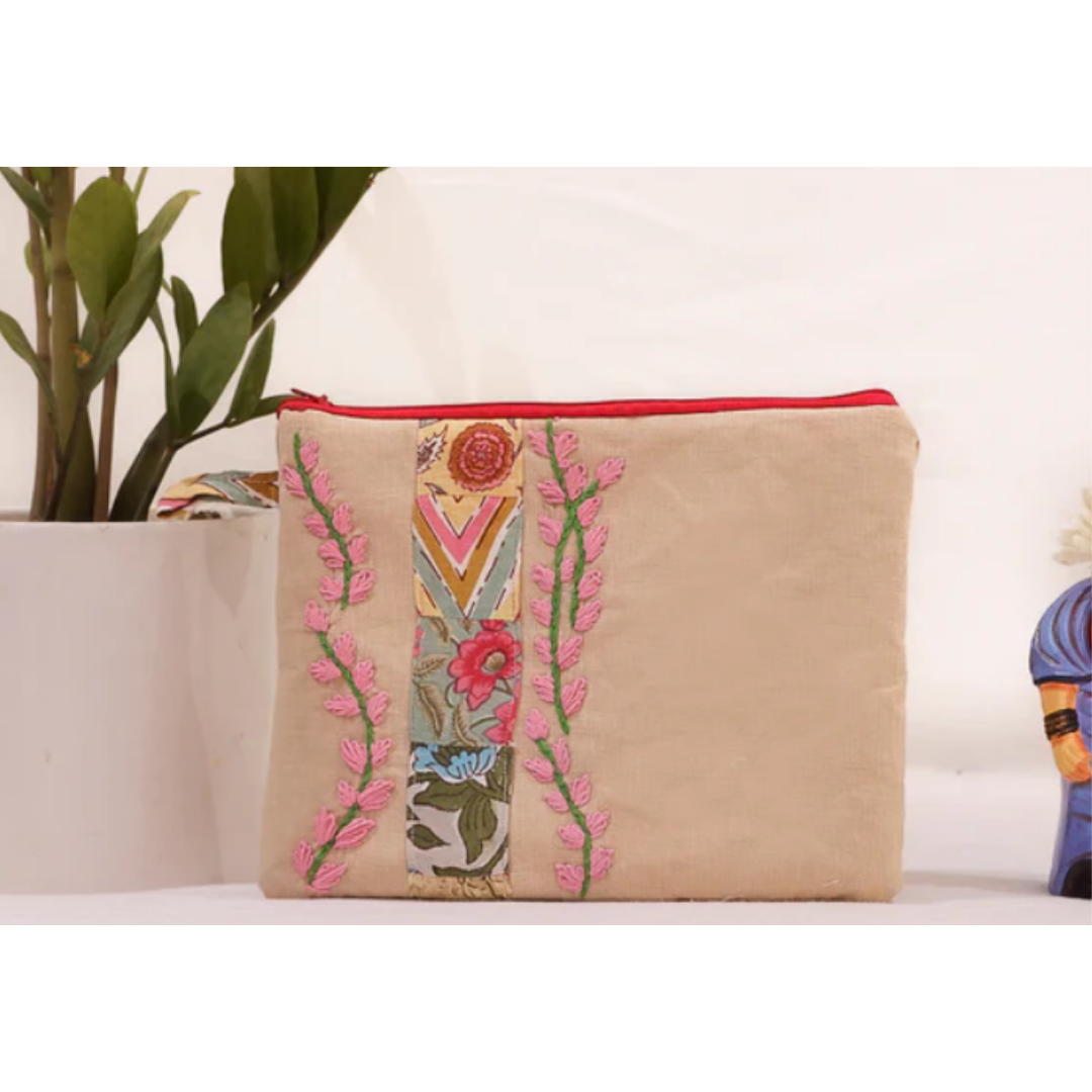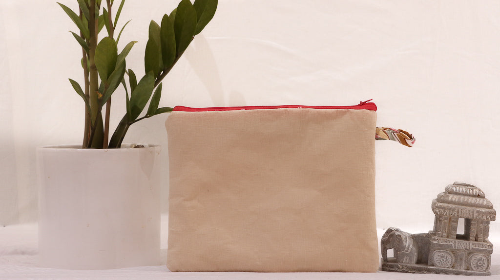 Esta hermosa bolsa con parche khadi ha sido hecha por el miembro de nuestro equipo, Rekha. Nuestra selección de este tipo de bolsos sin duda mejorará su experiencia al llevar sus pertenencias personales de manera cómoda. Esta bolsa reciclada con bordado a mano es perfecta para guardar de todo, desde artículos de papelería hasta cosméticos y artículos de viaje. ¿Otra ventaja? ¡Es adorable!
