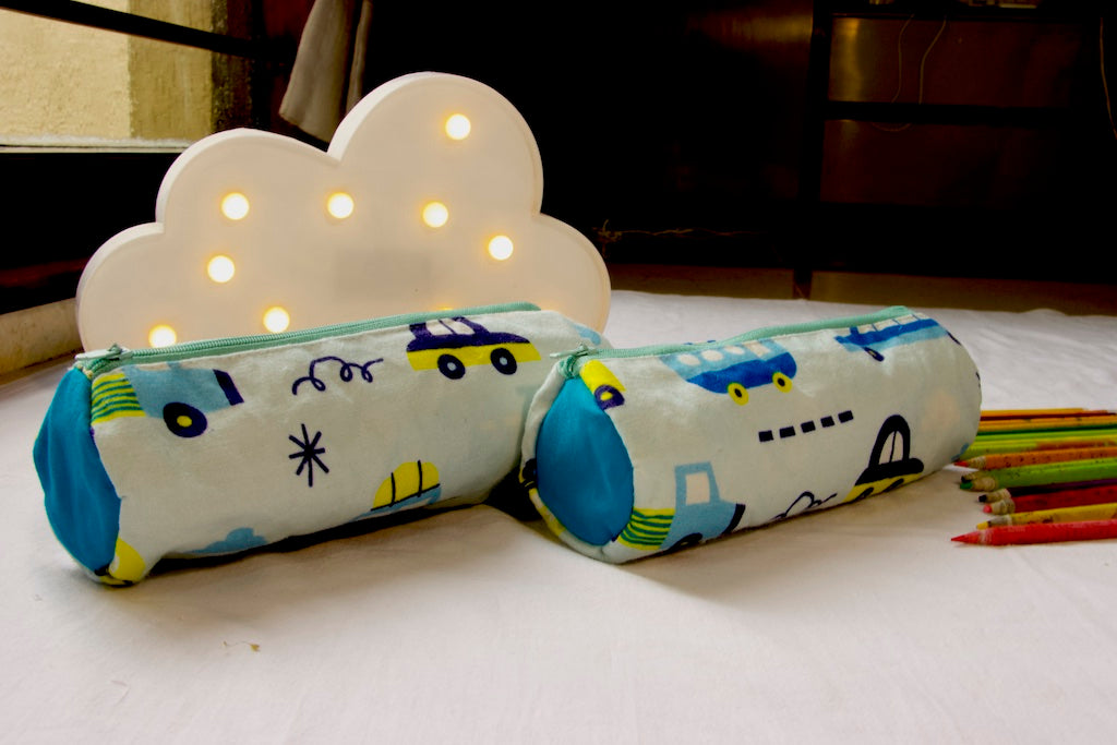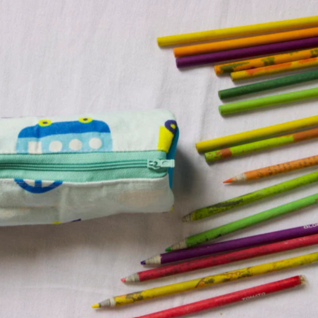 Esta bolsa multiusos tiene el tamaño justo y luce bien. ¡La combinación del patrón de un auto reciclado lo convierte en una linda bolsa de almacenamiento o en un colorido kit de lápices para la escuela!