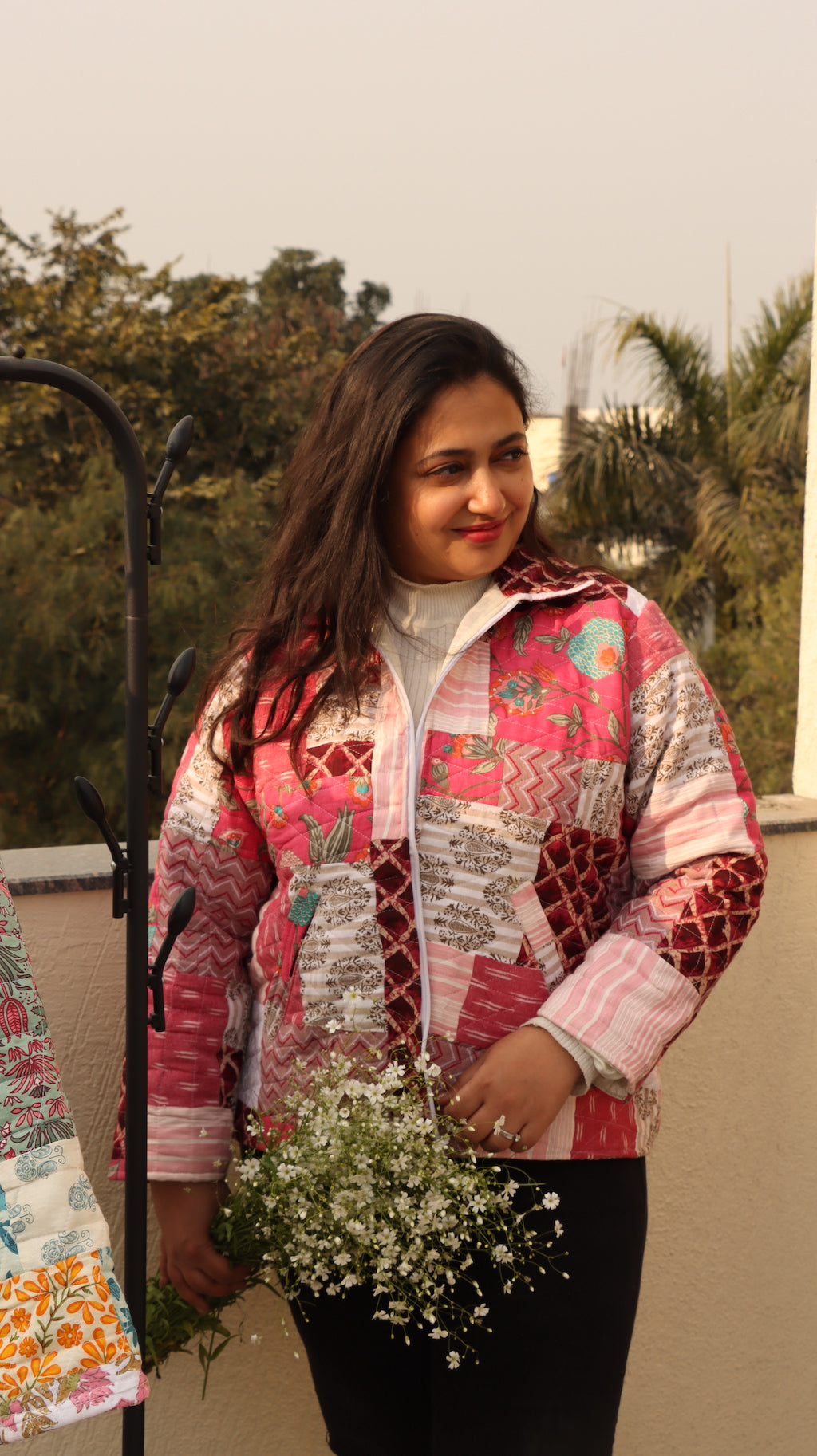 Chaqueta extragrande en tonos de rosa