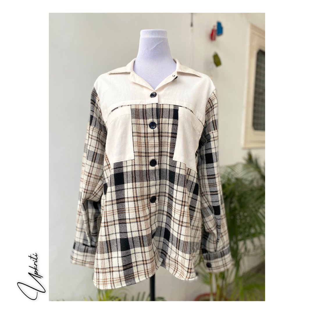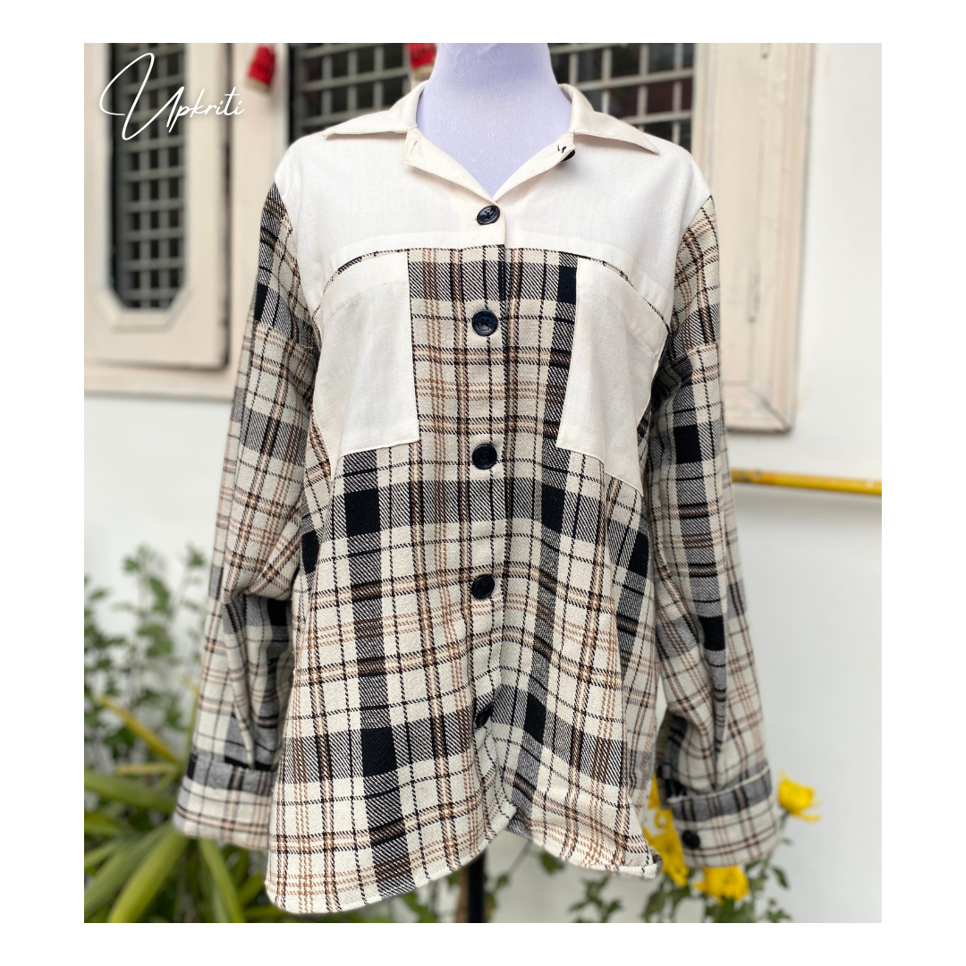 Eleva tu estilo invernal con nuestra camisa de franela unisex de semilana en cuadros atemporales en blanco y negro.