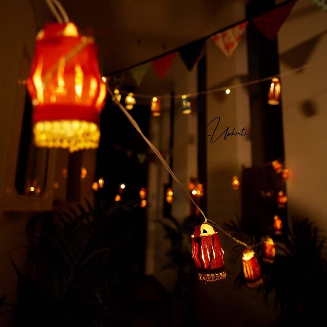 Las linternas de cadena de luces de tela hechas a mano de Upkriti son más que solo iluminación; son una celebración de la excelencia artesanal, un compromiso con la sostenibilidad y una forma de traer un poco de magia a tu vida. Ilumina tu mundo con estilo, elige Upkriti.